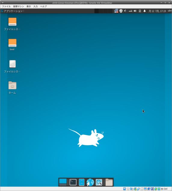1). 「Arch Linux」をインストールした仮想マシンに「Xfce」をインストール