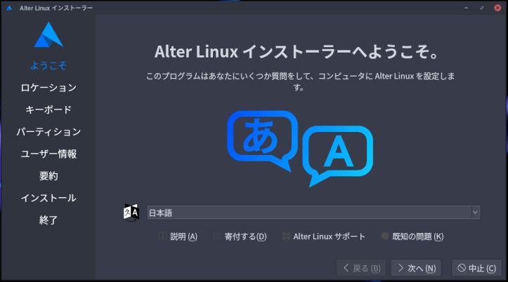 - 9). デスクトップにて、下側のアイコン「Alter Linuxをインストール」をダブルクリック