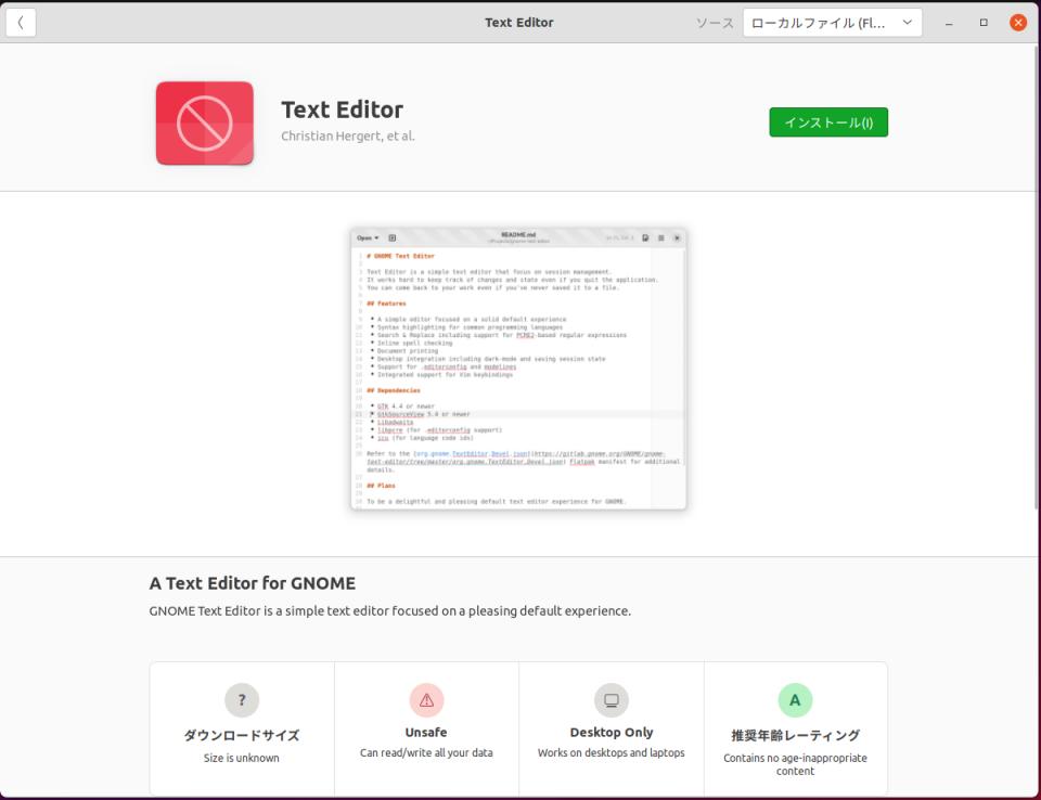 8). ダウンロードした「org.gnome.TextEditor.Devel.flatpakref」を右クリック→「ソフトウェアのインストールで開く」