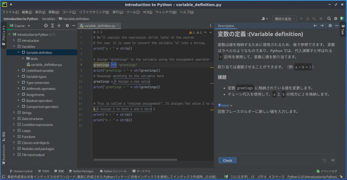 「PyCharm」の「Edu Tools」プラグインを使って、Python の学習:
