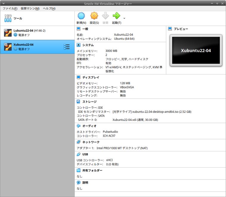 ゲストOS : Xubuntu 22.04 LTS ←(今回の作業)