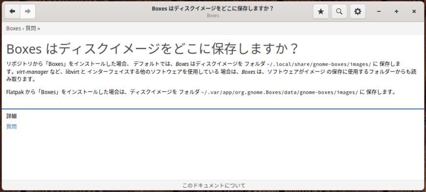 $ cd /var/lib/flatpak/app/org.gnome.Boxes/x86_64/stable/active/ $ sudo cp -r ~/ダウンロード/test-help/ja files/share/help/
