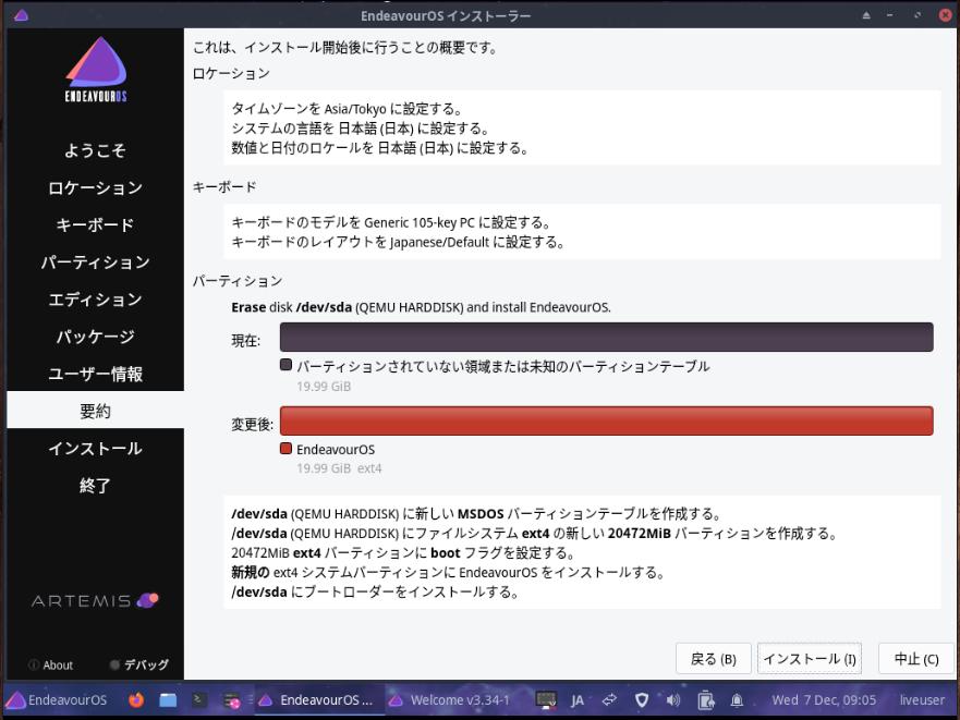 EndeavorOS は、インストールが楽で、使い勝手をよくした「Arch Linux」です。