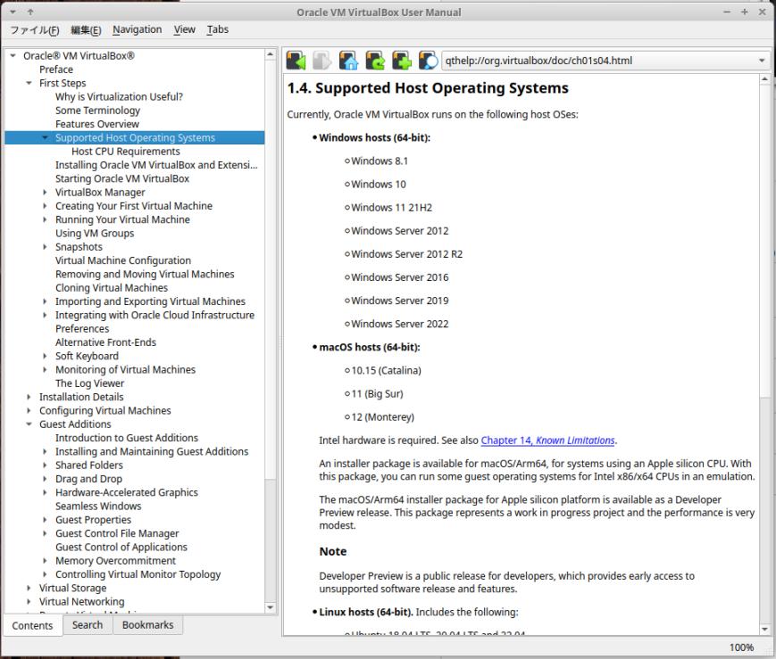 サポートされているホストOS をヘルプの「マニュアル表示」で確認: