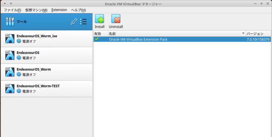 →インストールされている VirtualBox のバージョンと同じバージョンの「拡張パック」を事前にダウンロード済みです: