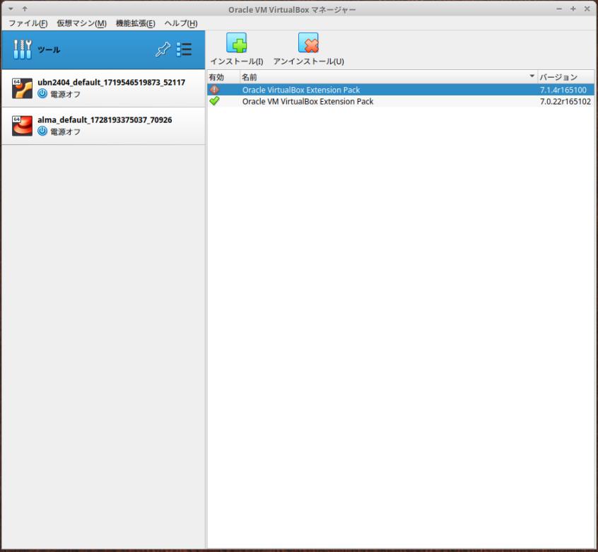 「Vagrant」はまだ「VirtualBox 7.1.4」に対応していないので、対応するまで、これで使うことになります。