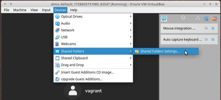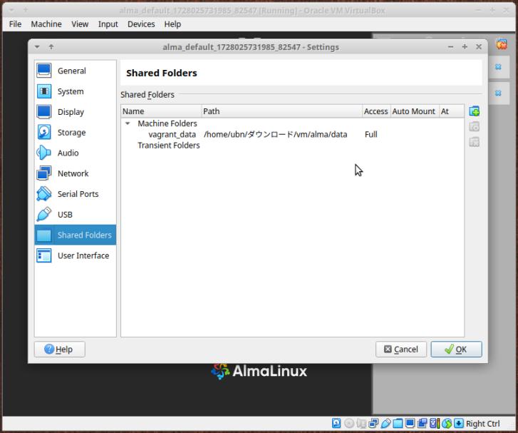 (~/ダウンロード/vm/alma)が、デフォルトの「共有フォルダ」になります。