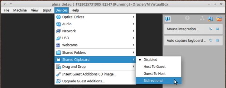 「Device」→「Shared Clipboard」→一番下の「Bidirectional」(双方向):