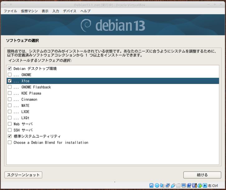今回 は、「Debian 13.1 Xfce」をネットインストールして、